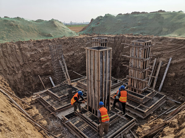 规模:本期集电线路拟采用A、B、C、D四条主干线,A线带11台风机,B线带10台风机,C线带11台风机,D线带8台风机。集电线路以架空线为主,连接风机及钻越处采用电缆连接。升压站附近段A线和B线为同塔双回路,C、D均为单回路。架空线路在荷载18MW以内时导线采用JL/G1A-150/25型钢芯铝绞线,地线采用OPGW-35型光纤复合地线;在荷载18MW~30MW间时导线采用JL/G1A-240/30型钢芯铝绞线,地线采用OPGW-50型光纤复合地线。架空线路全长70.42km,其中采用JL/G1A-150/25型导线单回35.68km,采用JL/G1A-240/30型导线单回长8.44km,采用JL/G1A-240/30型导线双回长26.3km。终端塔至箱变及部分钻越采用铜芯电缆敷设方式,直埋电缆全长(单芯电缆长度以1/3计列)13.31km,电缆截面选用-3×50~-1×300。地线选用单根OPGW-24B1、48B1型复合光缆架空地线(单回路选用24芯,双回路选用48芯)。